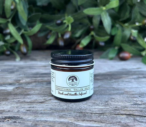 Ingredients: purified grass fed beef tallow, organic jojoba oil, organic rosehip oil, organic argan oil, essential oil blend (lavender, frankincense, tea tree, orange, geranium), pure vitamin E.